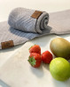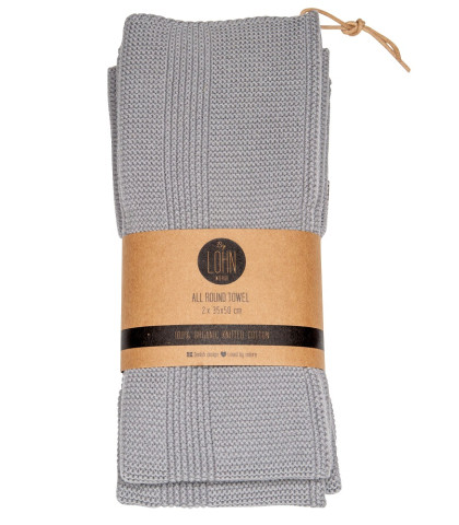 Lys grå håndklæder som er strikket i 100% økologisk bomuld - de er GOTS certificeret.