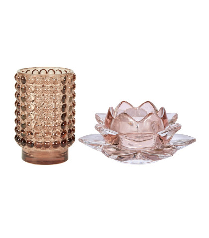 Skab en hyggelig og romantisk stemning med de smukke Speedtsberg fyrfadsstager i flot rose-farvet glas.